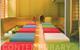 Konditor & Cook worked with graphic designers to devise a new brand identity for the chain, carried across its cake boxes and carrier bags. Red, yellow and purple all swirling together in a cake-mix motif is used colourfully on a large light box that makes the subliminal suggestion of a shopping bag while lighting the main display area.