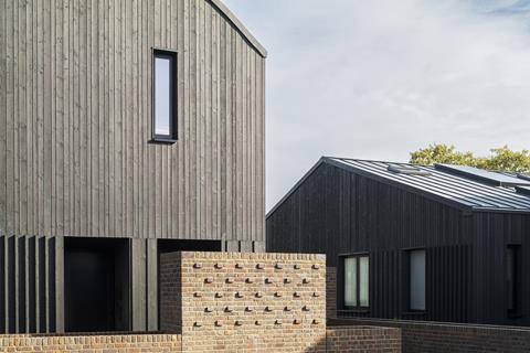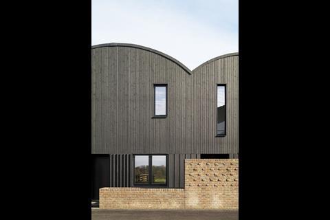 When the developers purchased the site, planning permission was already in place for a scheme created by another practice. The key stipulation was that the new dwellings should retain most of the structural frames of the existing farm buildings, so the houses would echo their forms – and, satisfyingly, this means some of the new homes have the distinctive curved roofs of the Dutch barns that once occupied the space. Nissen Richards Studio kept to the proposed building footprints but created new internal layouts, maxed the insulation and radically altered the homes’ external appearance to feature the charred timber and dark bricks.