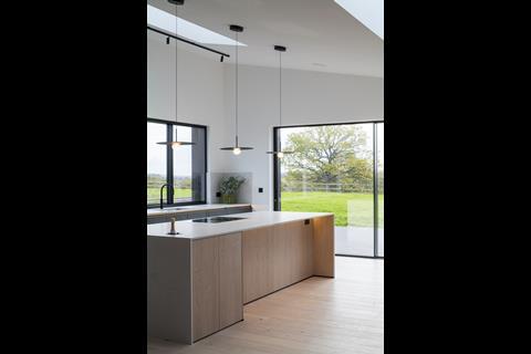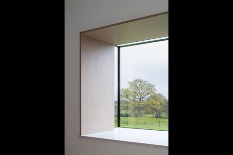 Large glazing is used wherever there are large views over the Weald, smaller windows where the view is towards common areas. In contrast to the dark exteriors, interiors are light and bright, filled with natural tones.