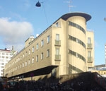 This hotel was designed to act as the station hotel for DBS — the Danish State Railway at Copenhagen. Falkentorp’s design encapsulates what a modern railway hotel is and could be; occupying a tight site next to the railway lines, becoming part of the railway scene and part of the city, making associations with travel and movement, yet anchored in the urban scene. Interiors have snug fitted furniture and cabin-type beds. The exterior hotel sign is the full height of the building, topped with an exuber-ant wheel, wings and crown sculpture related to the railway company.