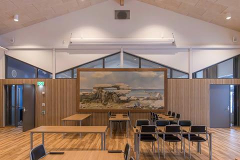 The regimental dining hall features a canteen, mess and reception areas and can accommodate 700 people across three sittings. A striking site-specific textile artwork, The Blue Hour by Katja Beckman Ojala, evokes Gotland’s coastal landscape, including its famous sea stacks.