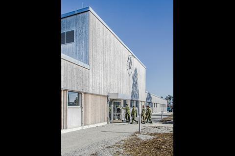 The utilitarian architecture is designed to support the troops’ day-to-day work, but it is also intended to allow the buildings to sit easily in their natural surroundings. The theme of the design competition was Camouflage, and the facilities echo the colours and materials of the austere landscape in which they are sited, where open alvar land (bare limestone grassland) meets sparse pine forest.
