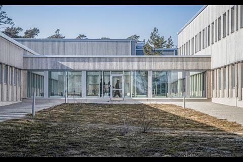 The technical buildings have standing-seam metal-clad facades, while light pigmented concrete is used for the high-security structures. The buildings that the soldiers occupy have timber facades treated with heat and linseed oil which are intended to weather naturally to give a more humane character to the base – and echo the pines in the compound. The complex is designed to feel embedded in the landscape and not to look obviously like a military base. The designers’ touchstones were light and close contact with nature – to support employee wellbeing – as well as adaptability.