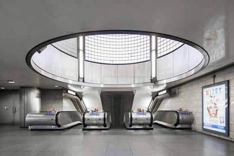 Historic England praised the site for its “consistently high quality” of design, material finish and detailing, including its famous circular ticket hall, its sweeping blue glass screen by artist Alexander Beleschenko and “bold” steel-panelled tunnel of the lower course.