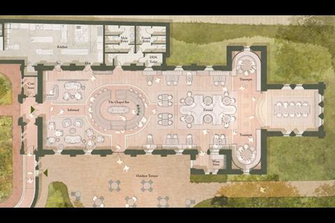 This would be connected via a new glazed walkway running around the edge of a “secret garden” to the chapel, which would be transformed into a larger bar and restaurant space.