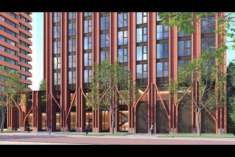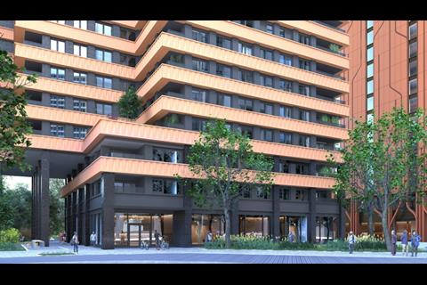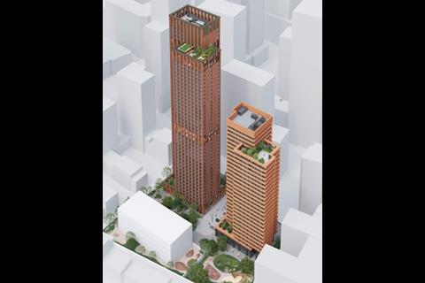 The Mastmaker Court scheme consists of a 43-storey tower containing 843 co-living apartments and a neighbouring 28-storey tower containing 153 affordable homes.