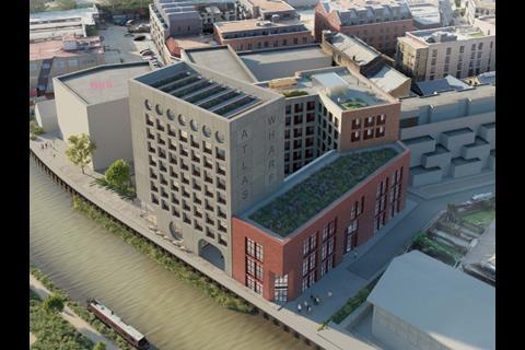 Designed for Scape and University College London, the Atlas Wharf scheme would contain 237 student rooms and 2,360sq m of creative workspace in three building elements facing the River Lee Navigation.