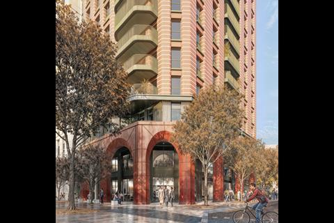 The proposals have sought to respond to the local townscape with a red terracotta-coloured podium level inspired by the adjacent Tube station, a typical example of the many Leslie Green-designed stations found across London with their oxblood-coloured faience tile cladding.