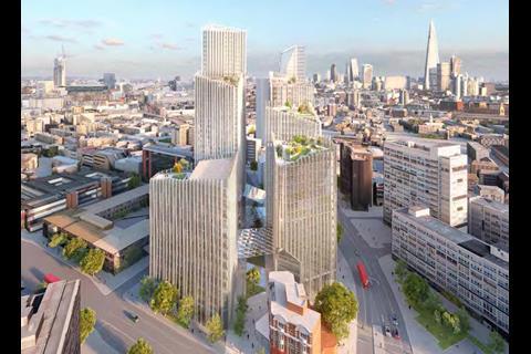 Southwark council has approved plans by HTA Design for a four-tower mixed-use scheme in the centre of Elephant & Castle.