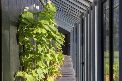 The courtyard is the heart of the scheme. Together with the other external circulation, the spaces between the buildings act as a threshold between interior life and the wider landscape. The aim of these open-air lobbies is to bring in light, air, scent, and the weather, and to invite the occupants to experience nature as part of daily movement.