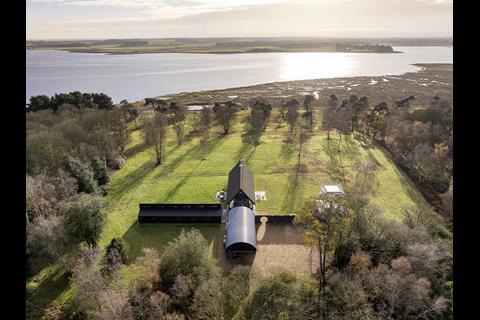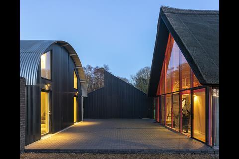 Other sustainable features include a rainwater harvesting system and the retention and planting of native holly trees to provide shelter for wildlife. A deep connection to place was felt in the way the project was realised. The thatch was laid by Beccles-based David Rackham whose family have been thatchers for over 14 generations, while the bricklayers, carpenters, plasterers and decorators all live within five miles of the site. The sleeping block is made from larch sourced in Essex and painted black using the barn paint typical of the region.