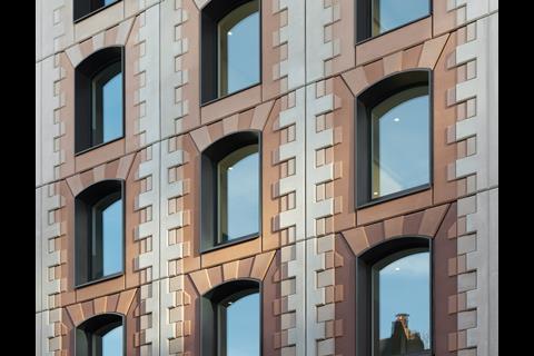This material has been used to make new glass reinforced panels. Guntas says several GRC specialists were approached but the experimental nature of the job meant that only one was prepared to take it on. The new façade gets progressively lighter storey by storey toward the top of the building. Five different colours have been used with each panel made up from several different colours. Crushed brick was used as the aggregate with dyes added to make the darker colours. To make up each panel one colour is poured at a time and allowed to initially set before the next colour is added next to it. Once all the coloured material has been added glass reinforcement is added. “It was a very laborious process,” Mavropoulos says. Once cured, the panels were sandblasted to give these a rougher, more organic appearance. The end result looks stunning, highly distinctive yet respectful of its context and a great way to use bricks that would normally end up as hardcore. Both Guntas and Mavropoulos say reclaiming the bricks in this way was a very site specific response but hope that the work done at Drummond St could set a precedent to use the technique on other projects.