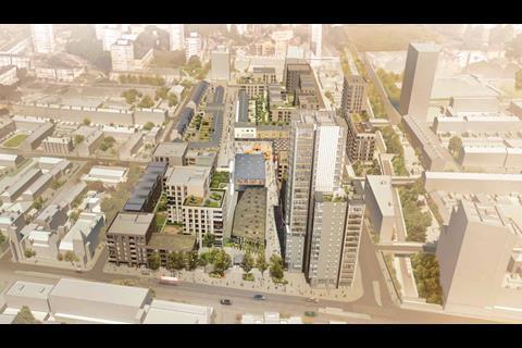 Developer Telford Homes and housing association Poplar Harca have consulted on a new vision for the 3.7ha site, drawn up by JTP Architects, which would include up to 580 homes, 675 shared-living homes and 650 student accommodation rooms in 12 buildings up to 29 storeys in height.