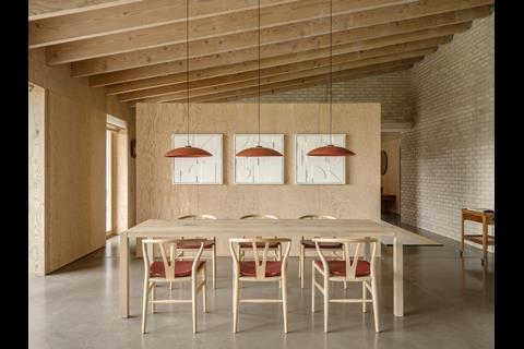 The jury said the scheme gives off a “calm and airy atmosphere of post-war Scandinavian architecture through its fair-faced brickwork, Douglas fir rafters, open-plan arrangement, and continuous full-height sliding doors opening onto a small patio”.