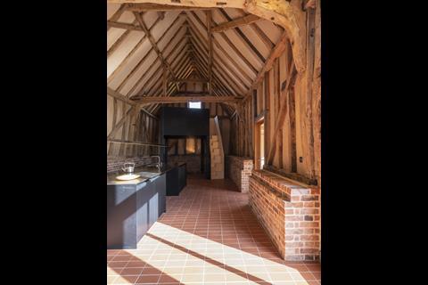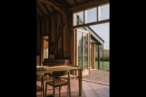 Replacement oak elements have been crafted to contrast with the older, worn timbers, while other new details including windows, doors and guttering are all “explicitly modern while sympathetic to the building”.
