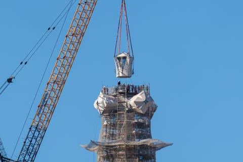 Top arm of 17m-high cross on the pinnacle of church’s Jesus Christ tower successfully installed on Friday