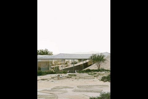 Proposes a linear east–west sequence combining permanent and flexible galleries formed of rammed earth and stone. Visitors descend below ground and re-emerge through gardens, symbolising baptism and renewal. A public square and rooftop landscape overlook the Jordan valley.