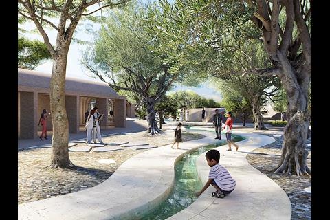Centred on the theme of immersion, the design integrates geometry, water and vegetation beneath a large shading roof. Water circulates through the project, defining movement and atmosphere to create a space of reflection and education.