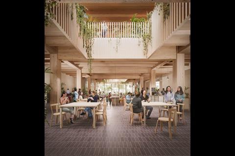 Carmody Groarke is focused on the lower levels of the building and the envelope, including the pavilions, which house student amenity and community spaces.