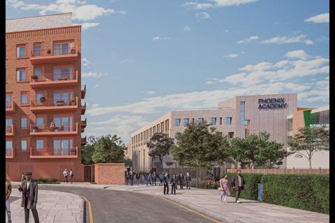 TP Bennett and Pick Everard have submitted plans to rebuild the Phoenix Academy in west London and construct a pair of residential blocks on the site containing 300 homes.