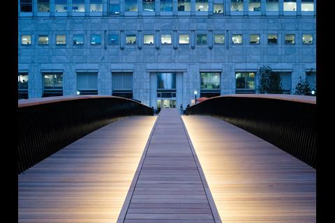 Steelwork for the 56m long footbridge was expertly fabricated and installed by Victor Buyck. It was made offsite in two sections, welded together adjacent to the site and floated into position by barge.