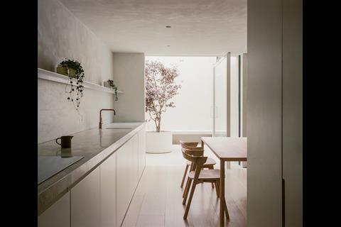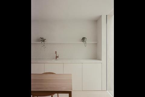 This was achieved by reorganising the floor plan into a linear open-plan arrangement, with a galley kitchen running the length of the property to maximise daylight and create dual-aspect ventilation.