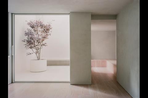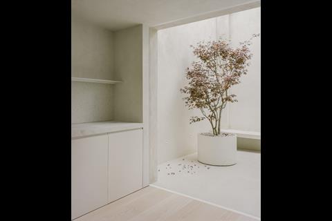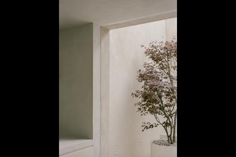 We are particularly proud of the calm, contemplative character of the interior. Its subtle play of tonal and textural nuances helps the space to read as a uniform whole and allows the focus to shift to the purposeful moments of celebration such as the Acer Palmatum Fireglow. The species was specified for its suitability to the sheltered courtyard, sculptural multi-stem trunk and the year round interest provided by its foliage transformation from a burgundy-red in Summer turning to a vibrant scarlet in Autumn.