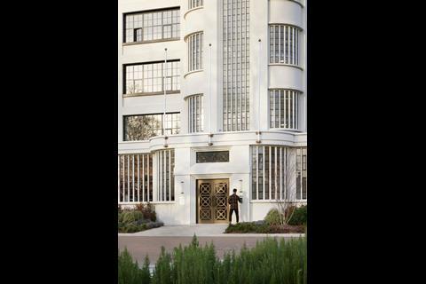 Window replacement was also critical. We specified Reynaers SL38 aluminium systems to match the original Crittall profiles while meeting Part L, using actuators where existing cills made manual operation unfeasible. For the curved Art Deco entrance tower, we developed bespoke aluminium strip glazing with Gladious, tailored to its tapering geometry.