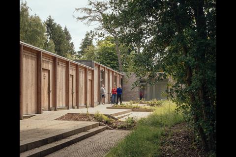 As a learning hub for children and young adults, it was vital to design a building that can “take a knock”. At the same time, the site was so lovely – in a glade in the woodland – that we wanted to make a building that whispered its presence rather than shouting it. To meet these divergent aims, we came up with a strategy to use a combination of timber cladding and brick. We placed the cladding behind areas where there is planting externally and adjacent to places such as the outdoor classrooms where people linger, and the brick along the primary routes around the building.