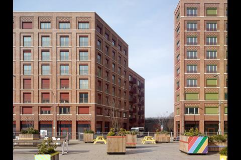 Longevity: Located within a complex array of Victorian infrastructure and 21st century commercial buildings, the project draws on robust residential and industrial references and conforms to the geometry of the site. The materials take cues from the nearby warehouses and viaduct and the brickwork, precast sills, copings and string courses to provide a robust, low maintenance exterior. The texture and modelling is accented using three colours of brick, with lighter tones used for outward-facing piers and frames and darker bricks in recesses.