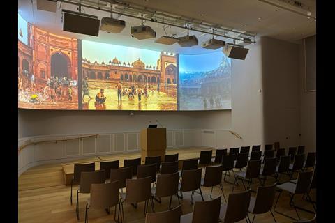 The curved screen in the new Shape room is a standout. The screen’s elegant curvature complements the architectural lines of the space while it seamlessly integrates cutting-edge AV technology into the historic setting, creating a truly immersive experience for both in-person and hybrid events.